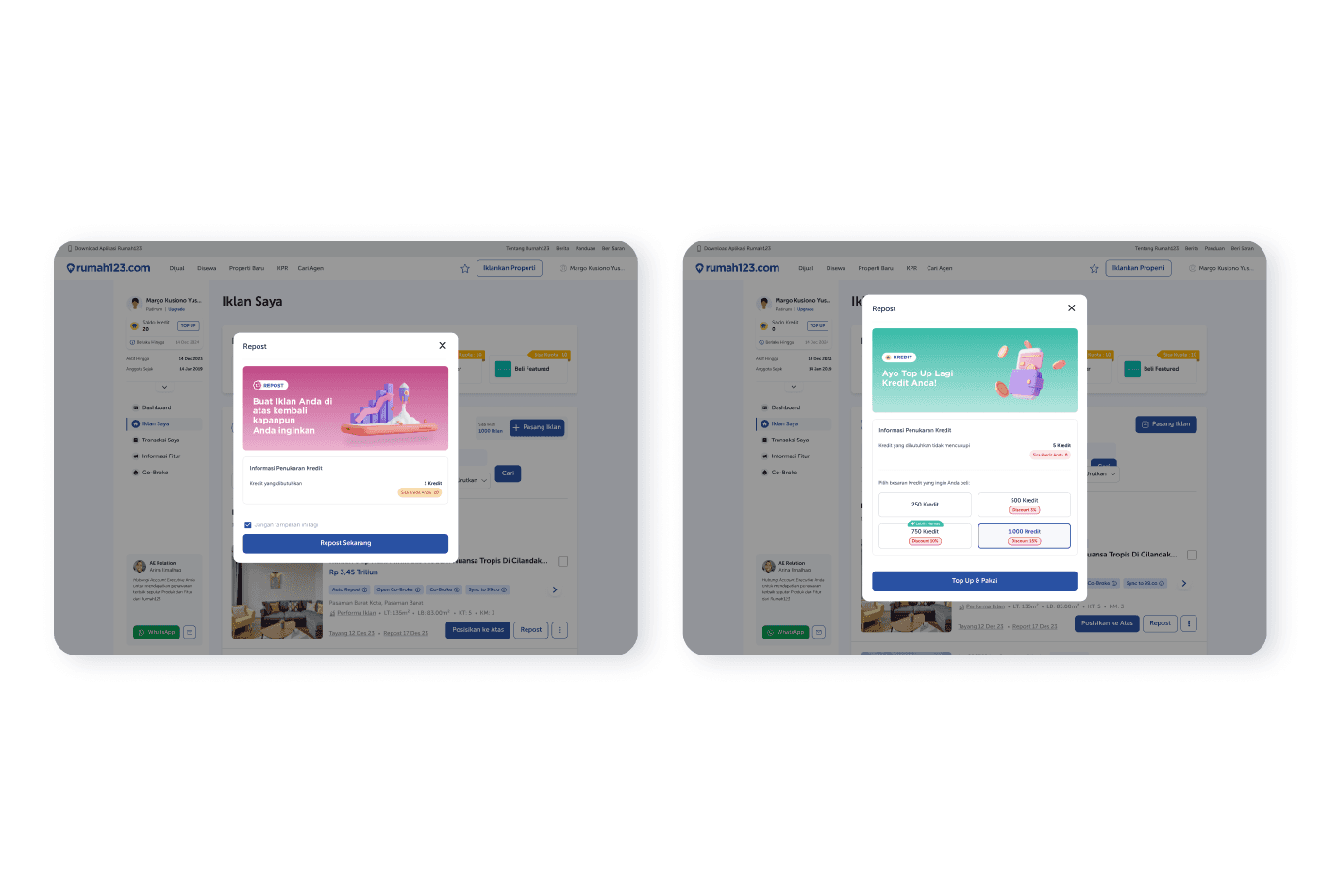 Repost is feature that will help the listing goes up instantly. This feature which was already at the market before (rumah.com as a competitor), but not in ours. With the new agent acquisition, it will also be easier for us to introduce to them as they were more familiar with it before and used it almost everyday.